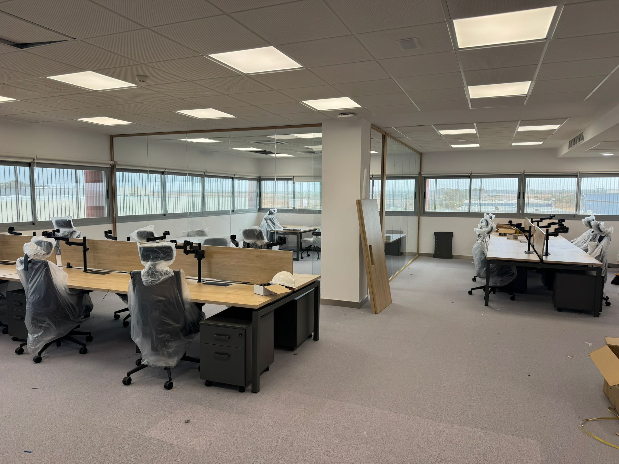 El proyecto incluyó la renovación integral de la red eléctrica, la instalación de luminarias empotradas de alto rendimiento y el cableado estructurado, garantizando un entorno de trabajo funcional y tecnológicamente preparado para las exigencias de una empresa líder en ingeniería y energía.